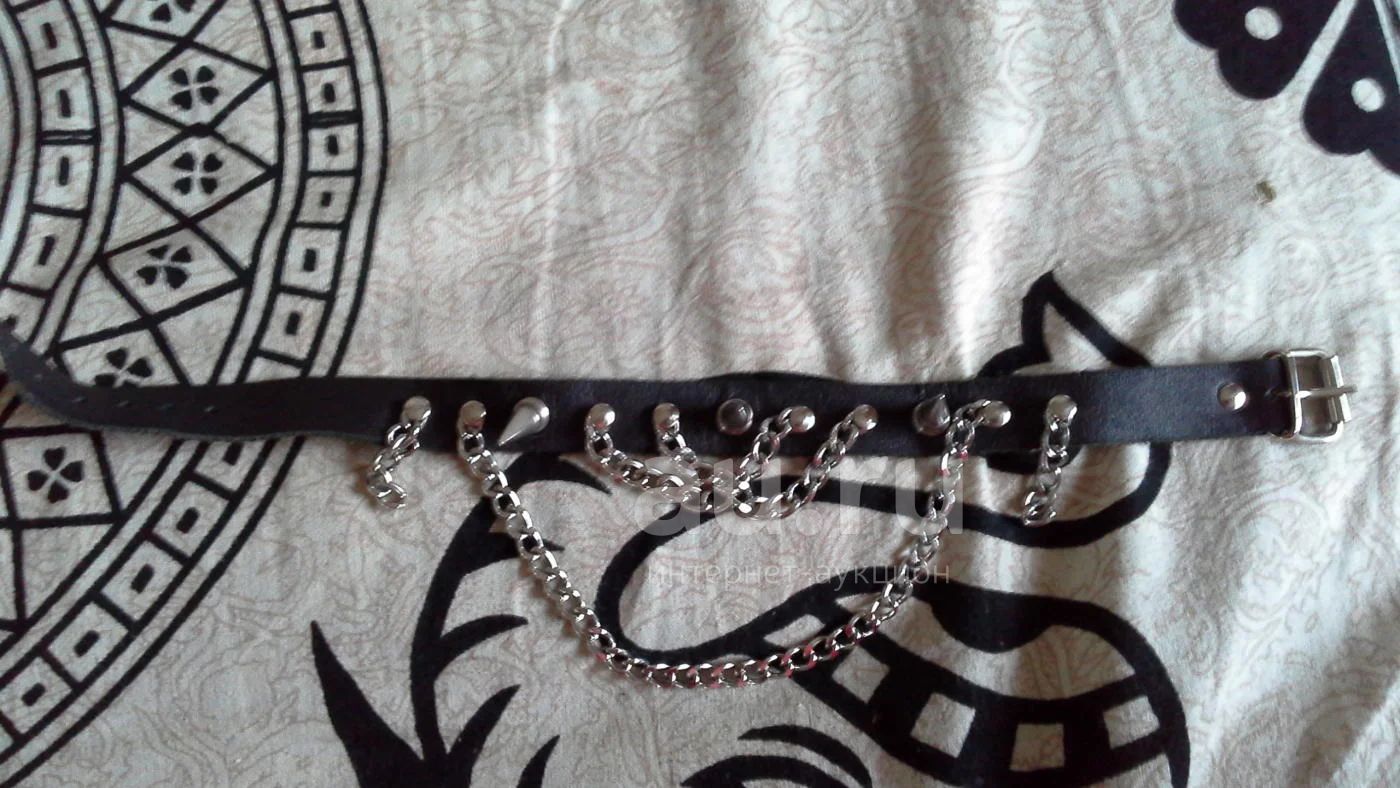 Ошейник с шипами и цепями. Ширина - 2 см., длина - 37 см. Очень удобная застежка.
