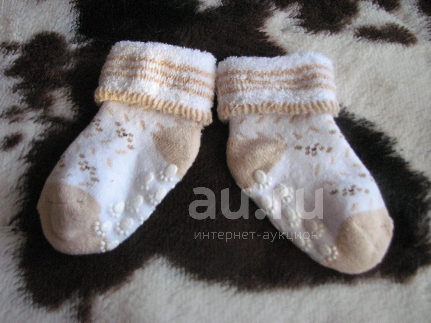 Носочки стопики махровые с прорезиненной подошвой для нескользения по полу. Унисекс. Цвет бело-бежжевый. НОВОЕ. На совсем малюсек до 1 годика