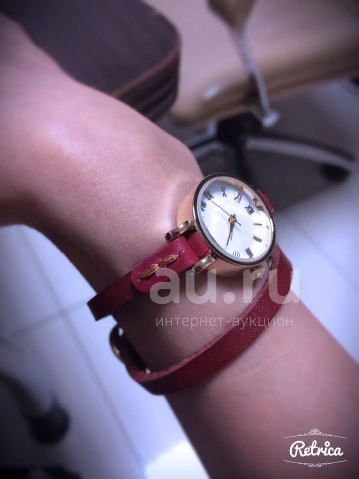 позолоченные, часы на кожаном, длинном ремешке