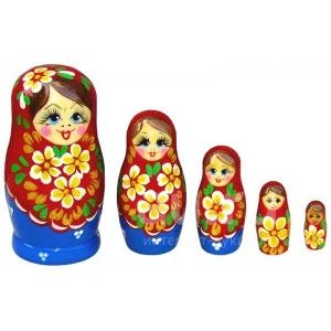 Гуашевая матрешка в красном платке, 5 кукол,11 см