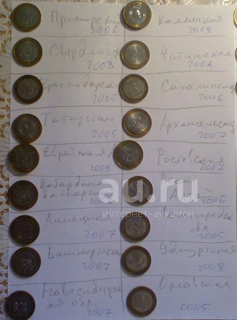 12 биметаллических десяток Калуга Каргополь Владимир Москва Каланинград Выборг Торжок Псков Смоленск МИД Еврейская Калмыкия