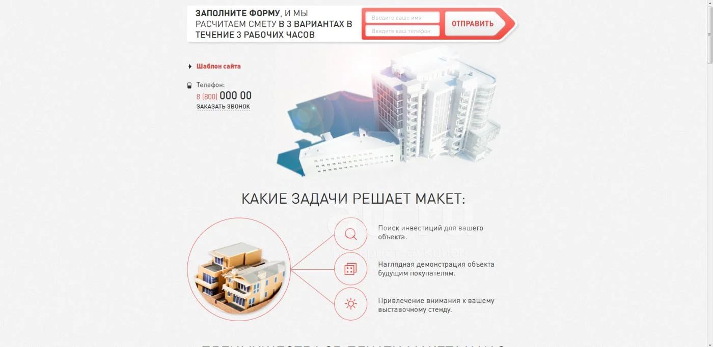 Готовый сайт (Landing Page). Изготовление 3D макетов зданий