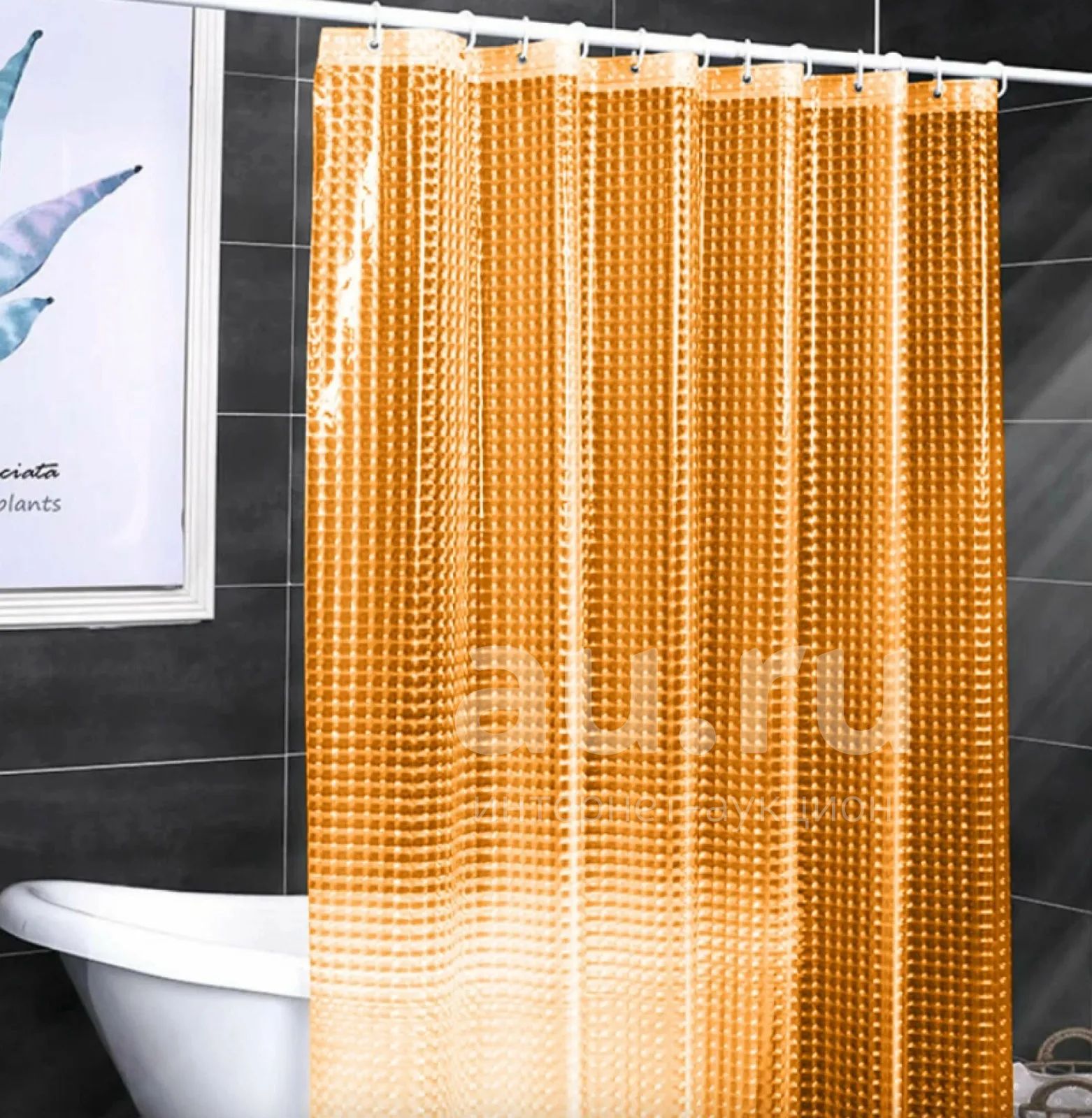 500руб.🧡 Штора для ванной 3D 180 х 180 см виниловая оранжевая "Голограмма",...