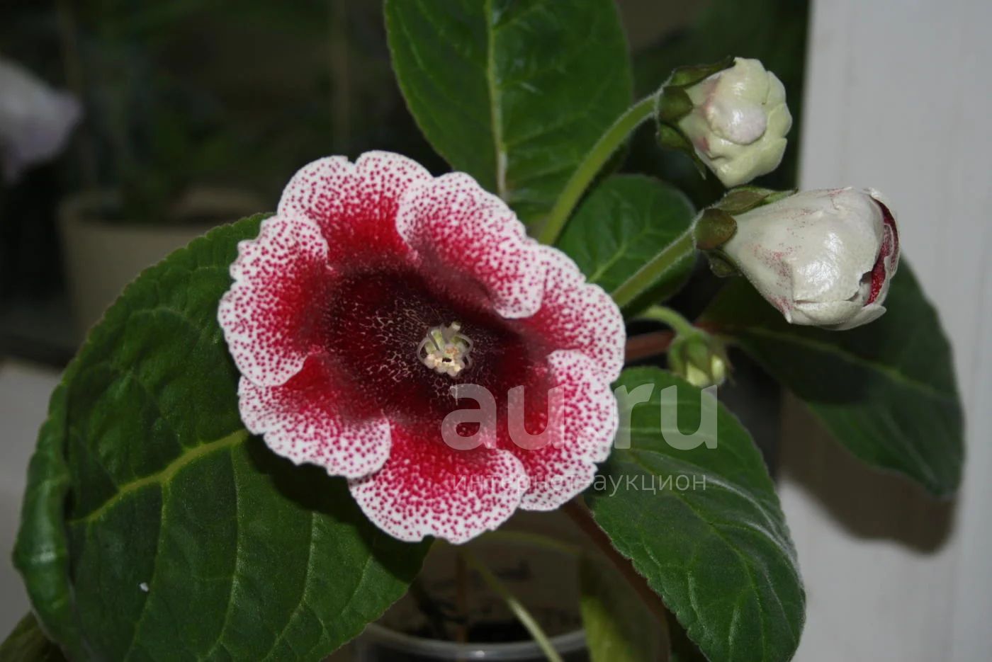 Зацвела очень красивая глоксиния. 1 бутон раскрылся, есть еще 5 бутонов.