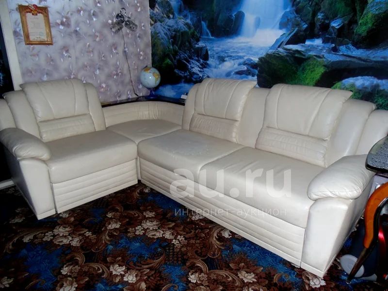 Продаем диван,раскладной,кожзам,немного потерт,на фото видно.Очень мягкий.,покупали за 34т.р.Решено продать,так как слишком огромен для нашей малогабаритной комнаты.Цвет молочный, не продавленный.Ширина 85, длина 264, 177ширина в раскладном виде.