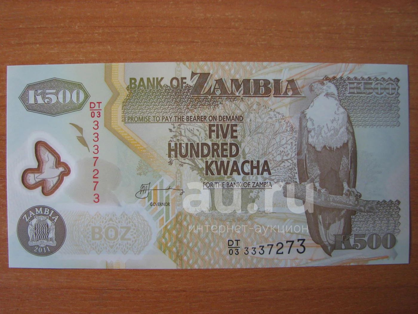 Замбия 500 квача 2011 года. Пластиковая купюра. Идеал!