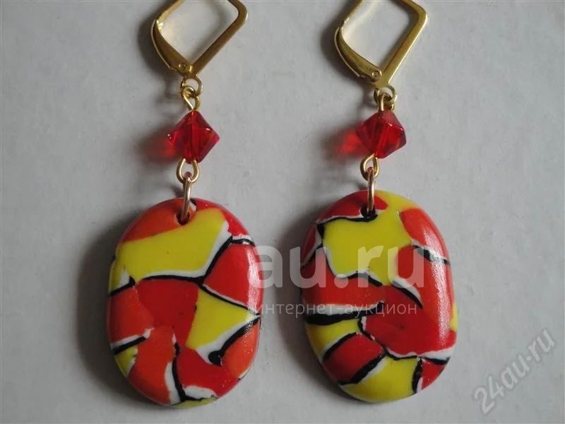 Изделия из полимерной глины,серьги"Горячее солнце".Техника "Акварель"