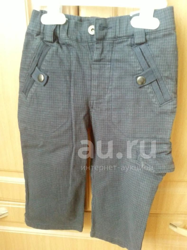 Цвет темно-синий, в мелкую клеточку (фото не передало цвет), р-р 80, 12 мес, ткань плотная