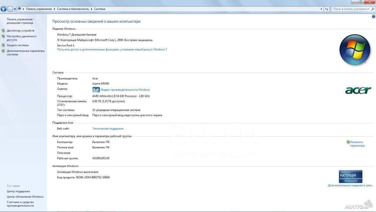 Операционная система — Windows 7 Домашняя Базовая