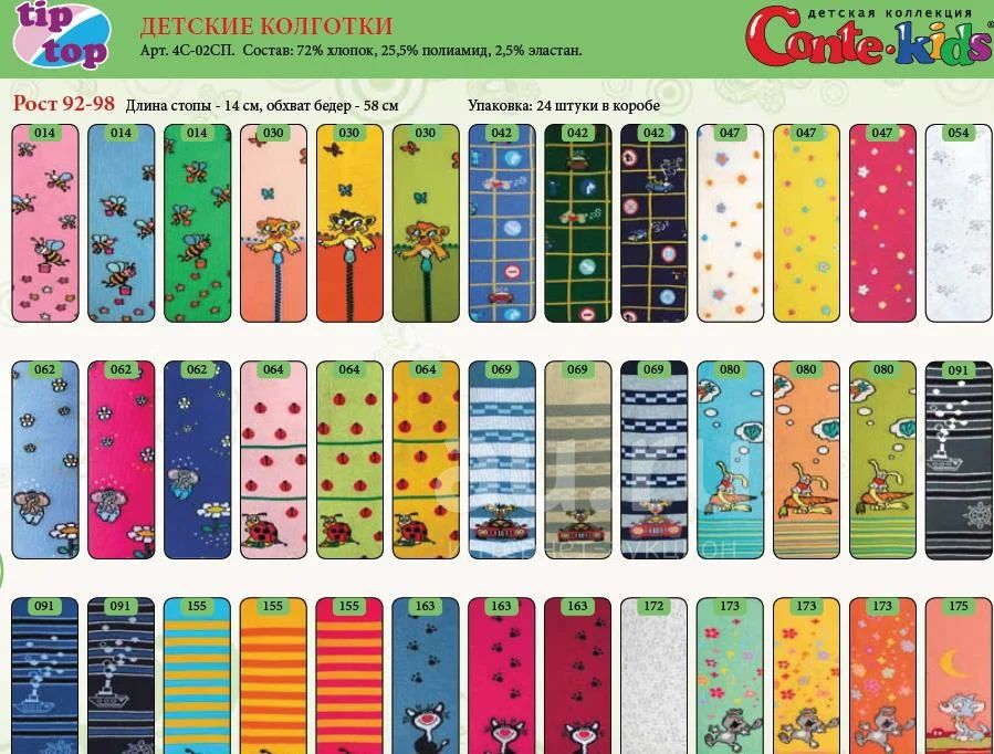 Оптимальное соотношение — качество, внешний вид и цена делают детские колготки Conte Kids конкурентоспособными. Благодаря высочайшему качеству, удачному составу и большому количеству предлагаемых расцветок и рисунков линия Conte Kids завоевала множество лояльных покупателей.