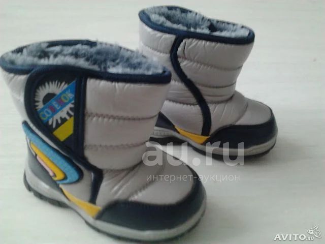 Сапожки демисезонные на большом меху,обсалютно новые,не разу не одевали.Очень теплые и удобные,малыш проходит до самых холодов.Размер 22,но из-за большого,густого меха,подойдет на 20-21 размер