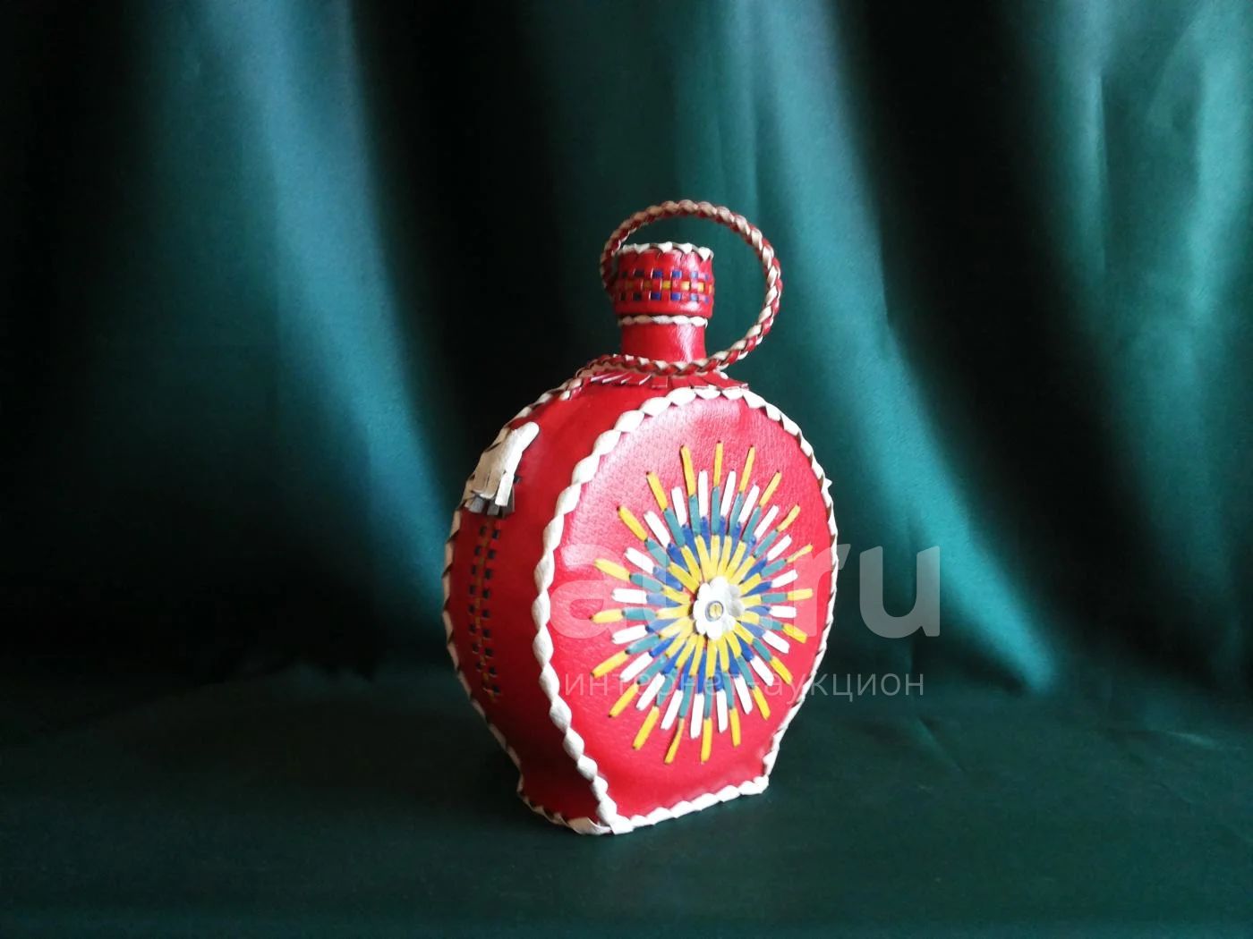 Стекло в кожаной оплетке ручной работы. Югославия 70-е годы. Объем 1 л.