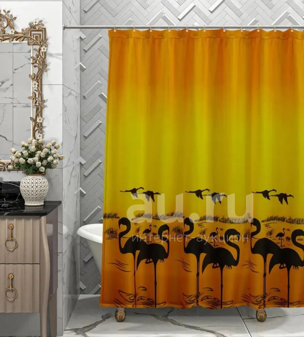 🧡 Штора для ванной ZALEL 180 х 180 см из высококачественной ткани оранжевая "Фламинго", Турция / оранжевые шторы шторки шторка в ванную ванну душ ванны душа занавес занавесь занавесы занавеси занавеска занавески портьера портьеры полиэстер /