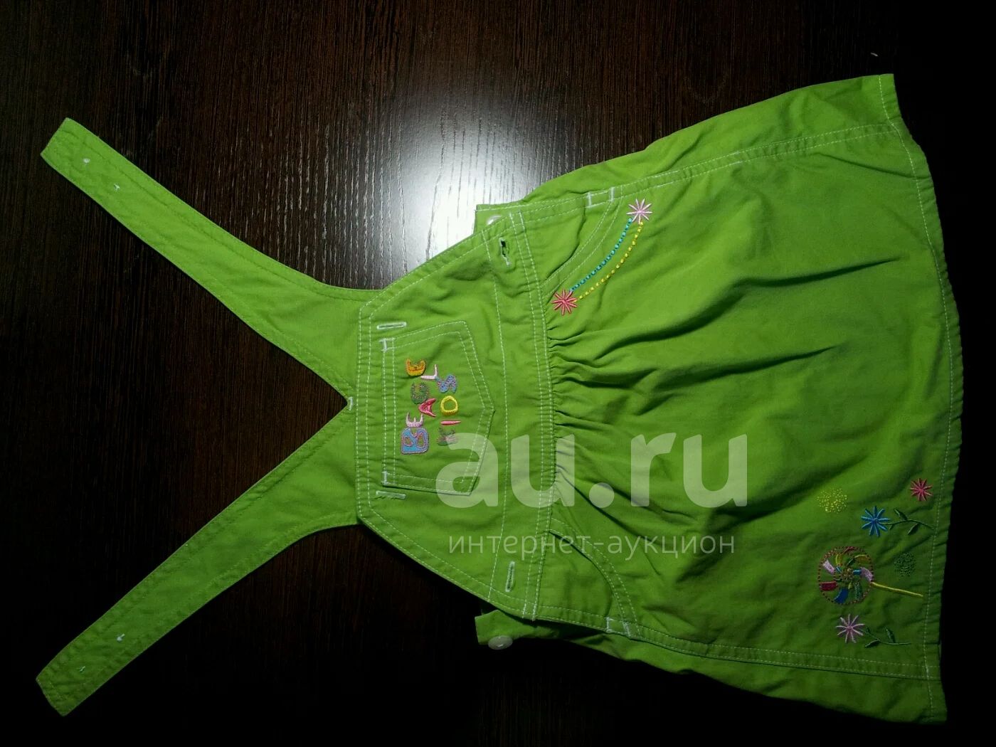 Джинсовый сарафан салатового цвета.