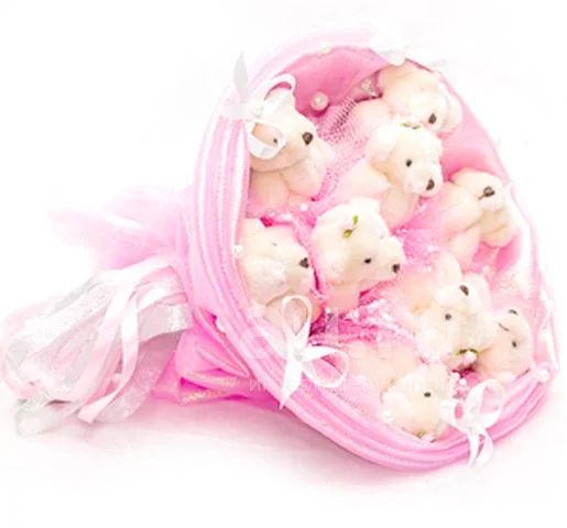 Букет из плюшевых игрушек станет приятным подарком как для детей, так и для взрослых. Особенно хорошо подойдет для того, чтобы выразить свои нежные чувства любимой девушке. Одно из главных свойств таких необычных букетов – они не вянут и не портятся со временем. Ваш подарок будет радовать глаз и вызывать улыбку спустя многие недели после праздника.