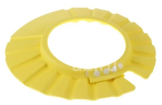 Желтый, объем регулируется кнопками, мягкий. Защищает лицо от мыльной пены и брызг воды. Может использоваться при стрижке, как защита от падающих на глаза волос. Для некоторых родителей и деток - это решение больших проблем.