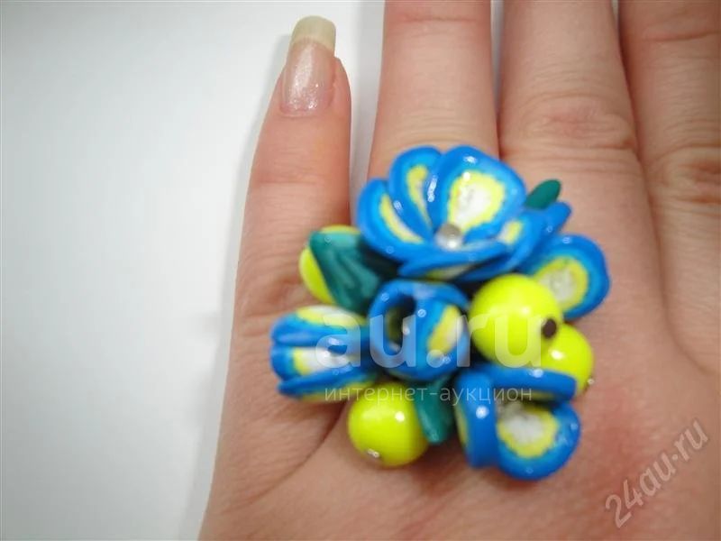 Изделия из полимерной глины кольцо " Голубые цветы" авторская работа