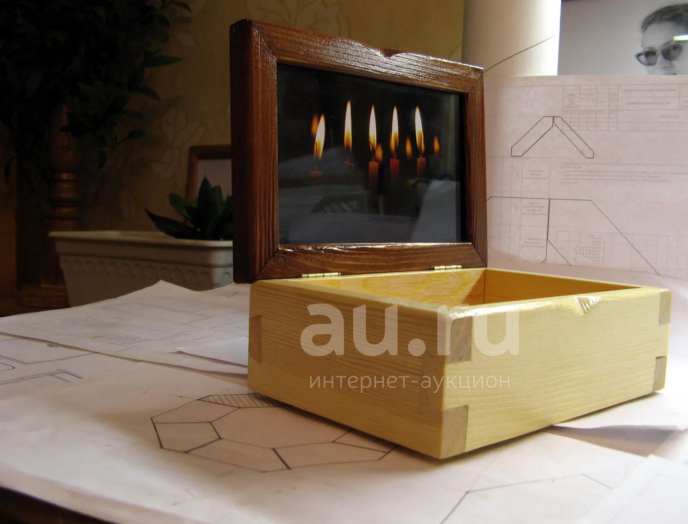 Шкатулка 'Свеча' (дерево, ласточки, фото под стеклом, текстиль на дне) подарок сувенир