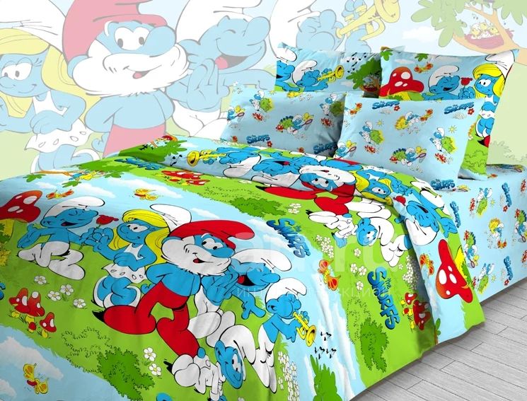 Постельное белье 1,5 сп детское, м."Смурфики".высококачественная бязь.