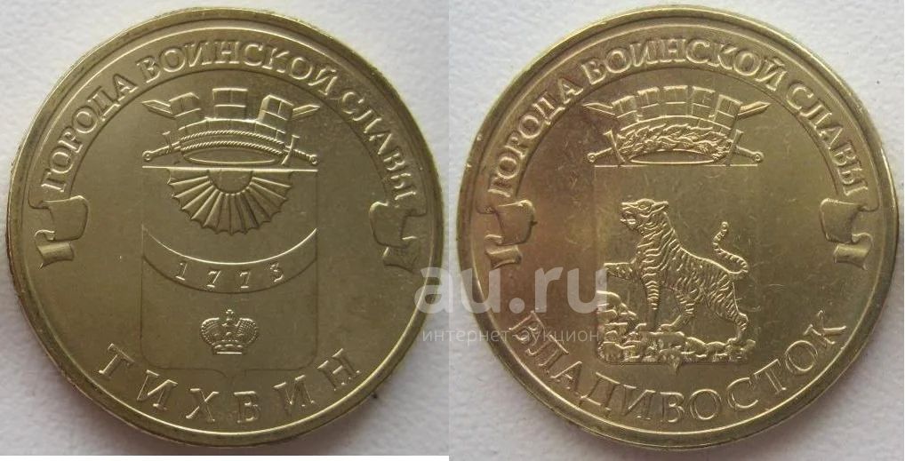 10 рублей 2014. Тихвин + Владивосток, цена за обе, в обороте не были