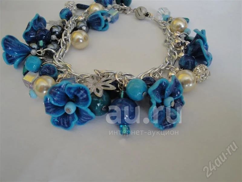 Изделия из полимерной глины браслет " Голубой лен" ручная работа