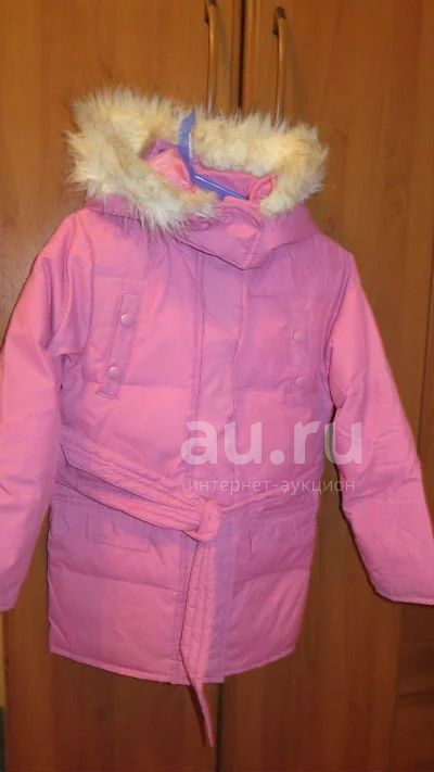Куртка-пуховичок тонкий, рост 110 см. На пояске, куртка на замке и кнопках, мех искусственный не отстегивается.