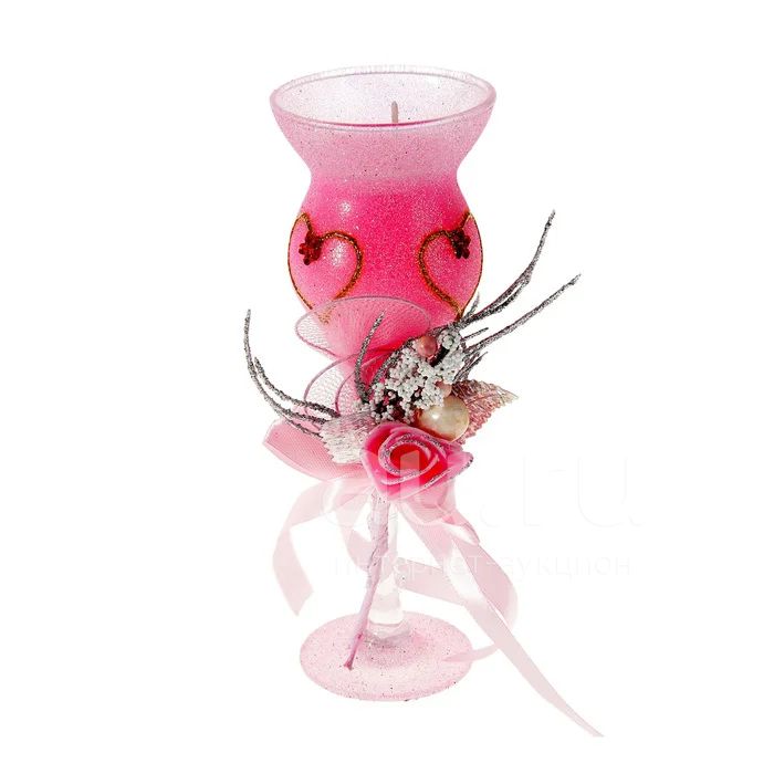Свеча в бокале с сердцем и декором, красная