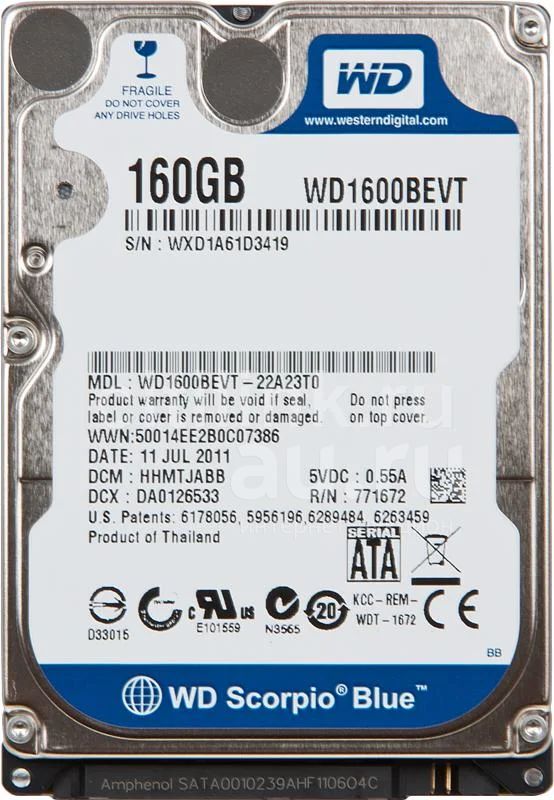 Жесткий диск (винчестер) HDD WesternDigital 2,5" WD1600BEVT 160 ГБ/5400 об.мин/8Мб