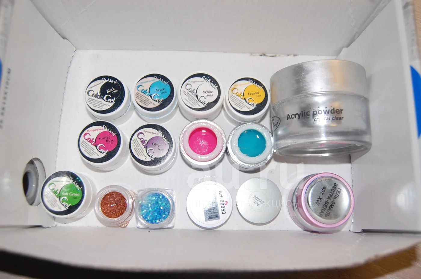 продам одним лотом гели разных цветов Ру нейл и Алекс бьюти, а также почти полная баночка акриловой пудры Алекс бьюти ,белый гель YOKO и блестки Ру нейл ( покупала для работы, но так как родился ребенок , сейчас заниматься наращиванием ногтей нет возможности ).