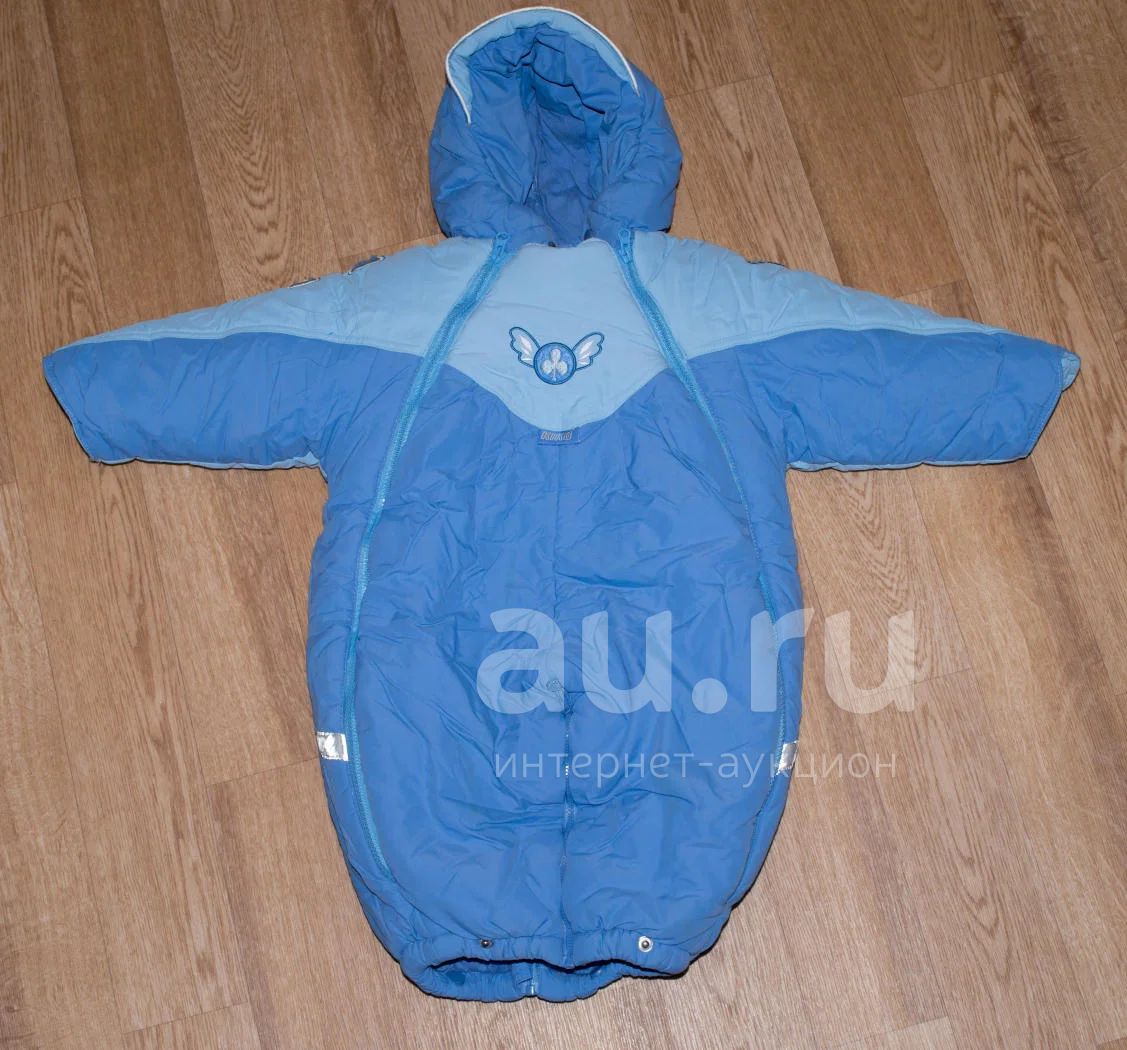 Комбинезон-трансформер фирмы Kiko, с подстежкой из овчины, которая отстегивается. Очень теплый! Даже в морозы надевали под него всего один слой одежды и ребенок никогда не мерз! Без подстежки можно носить как демисезонный поздней осенью или ранней весной. Размер 74, но мы носили с рождения. В комплекте идут теплые пинетки и варежки.