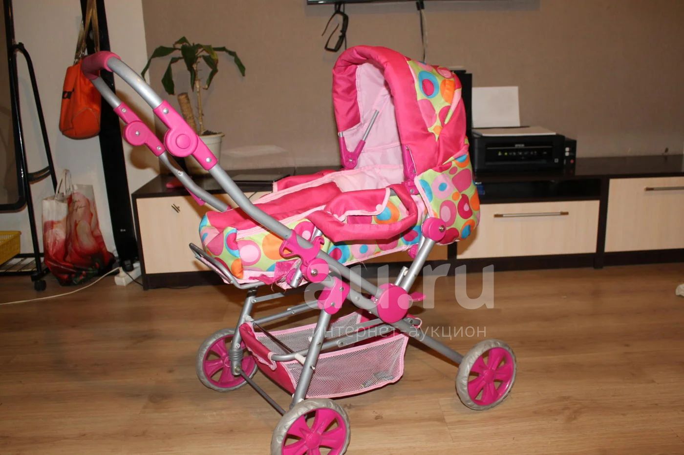 коляска в отличном состоянии,почти новая покупали за 3200! к коляску идет переноска для кукол,ручка перекидывается,коляска делается сидячей и лежачей,капюшон отстёгивается!купили ребёнку в 8 лет,а она не стала играть(((