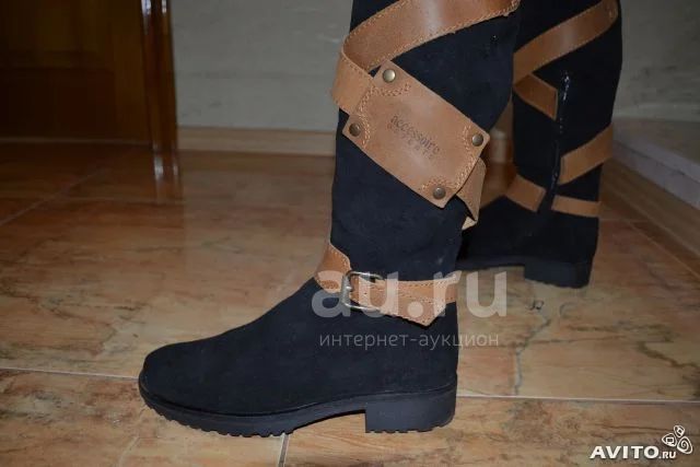 Сочетание черной и желтой замши. Внутри- натуральная кожа. Есть небольшой устранимый недостаток. Смотреть и мерить на Ул Воронова