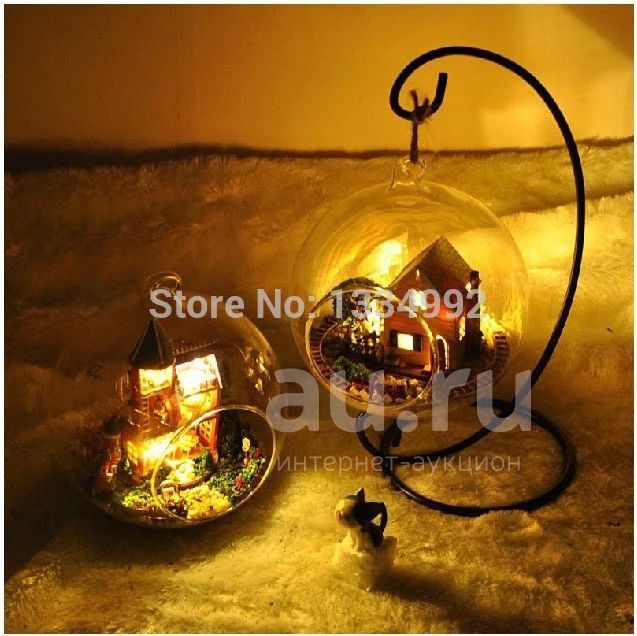 Отличная вещь для коллекционирования - домик в шаре (шар-ночник). Для самостоятельной сборки, в комплект входят светодиоды. Подсветка домика в шаре включается хлопком в ладоши. Вечером и ночью такой домик в шаре (особенно если не один) создаст атмосферу уюта, волшебства и романтики.