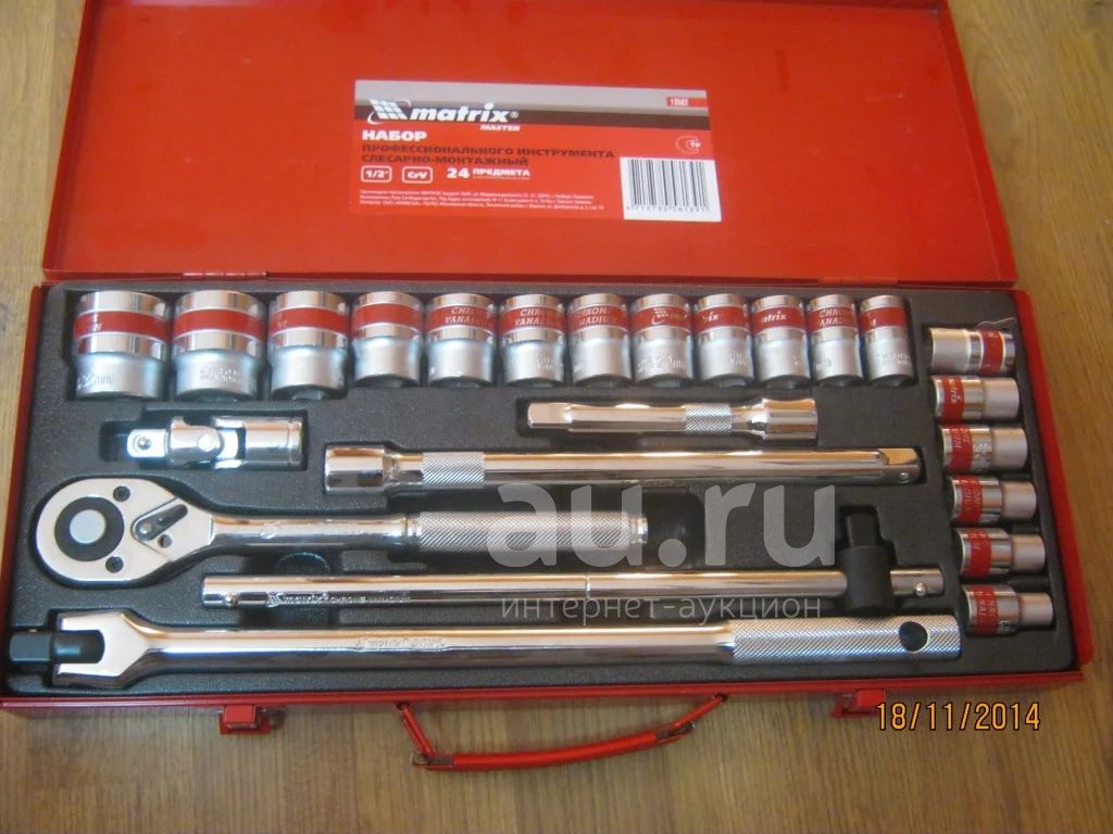 В комплект входят инструменты под квадрат 1 2: торцевые 6-гранные головки 18 шт. (10, 11, 12, 13, 14, 15, 16, 17, 18, 19, 20, 21, 22, 23, 24, 27, 30 и 32 мм)