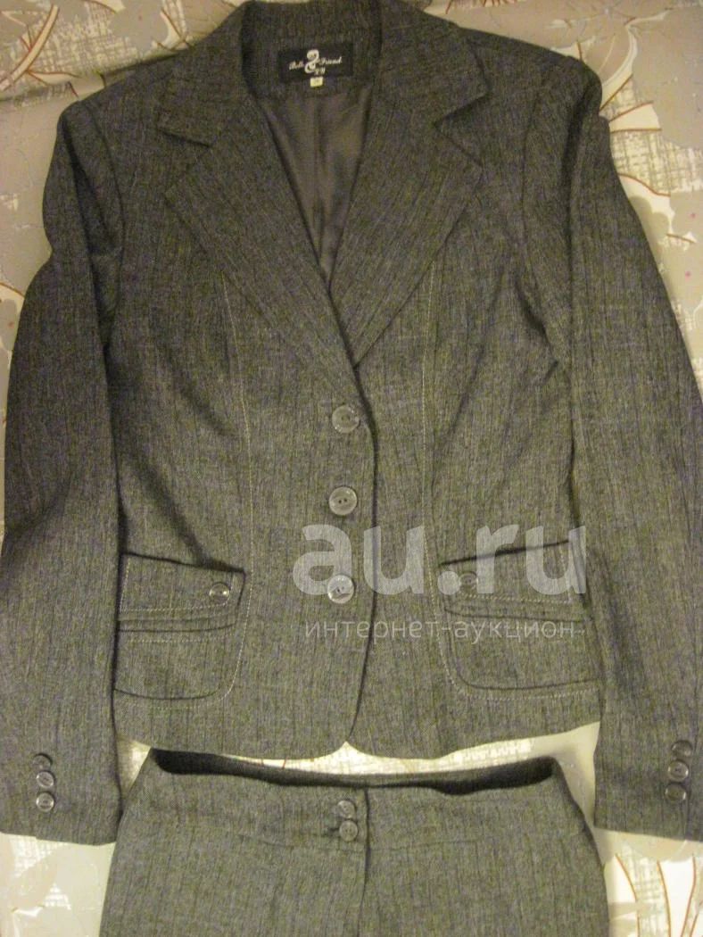 Продам брючный костюм,насыщено серого цвета.Жакет:длина рукава-60,плечи-37,об. гр-85,длина изделия-60.Брюки:талия-72,об. бёдер-90,длина-99 см.