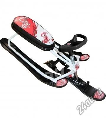 Большой размер мягкого сиденья (55 см), украшенного шелкографией, позволит разместиться 2 детей или взрослого и ребенка с комфортом, положив руки на спортивный руль. Лыжи прикреплены на отлично и сделаны из морозостойкого пластика, устойчивого к деформациям.