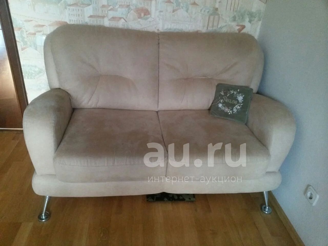 Диван раскладной. В отличном состоянии. Ткань искусственная замша. Цвет бежевый. Можно ставить как к стене так и нет, поскольку спинка то же обтянута