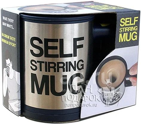 Кружка «Мешалка» — оригинальный и полезный подарок для каждого занятого человека. Встроенный двигатель, работающий от двух батареек типа «ААА», быстро и качественно смешивает содержимое термокружки.