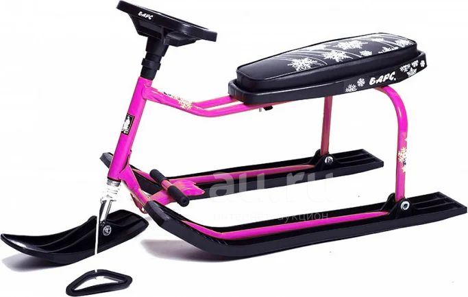 Надежная рама, устойчивая конструкция, лыжи и руль из морозостойкой и ударопрочной пластмассы, удобная травмобезопасная форма руля, руль обеспечивает оптимально комфортную посадку, эффективный тормоз, позволяет разнообразно маневрировать, большое мягкое сиденье, возможность посадки двух седоков, буксировочный трос, обеспечивая безопасность и комфорт, дизайнерский рисунок на сиденье все это делает снегокаты БАРС признанным лидером на рынке снегокатов.