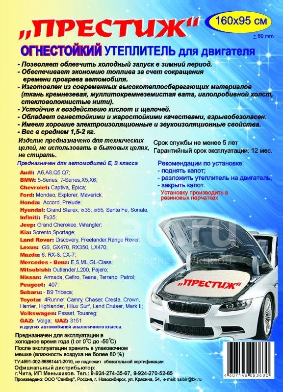 Если вы хотите Качественно утеплить свой автомобиль, но при этом не хотите переплачивать за бренд, тогда это предложение для Вас! Одеяло не горит и устойчиво к кислотам. Выдерживает высокие температуры!