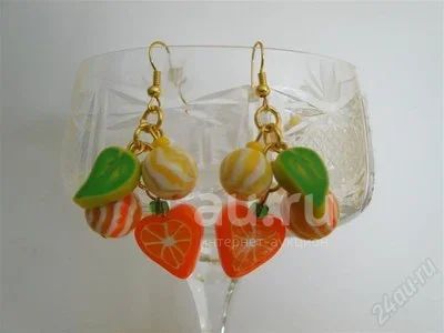 Изделия из полимерной глины серьги из серии " Сочный апельсин" авторская работа