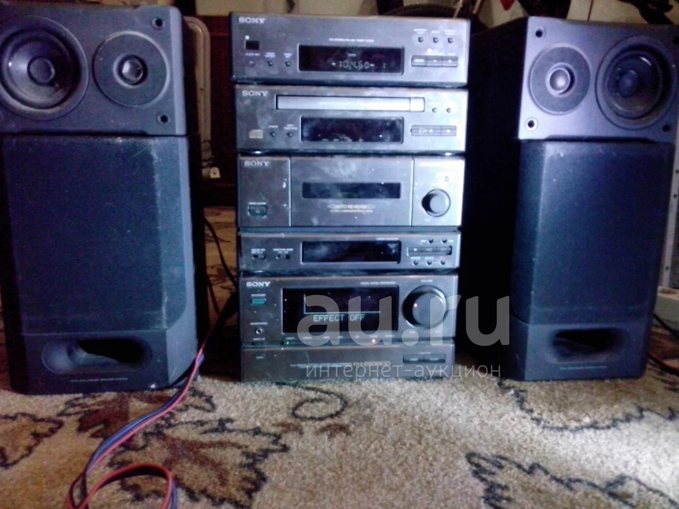 Потертости и царапины на корпусе. Нет одного шлейфа, опто-кабеля, антенны. Из-за этого нет возможности проверить все элементы системы. Сама включается, на нажатие кнопок реагирует, видит фм-тюнер. Разболтан разъем питания 220в. Колонки проверял на отдельном сабвуфере - работают.