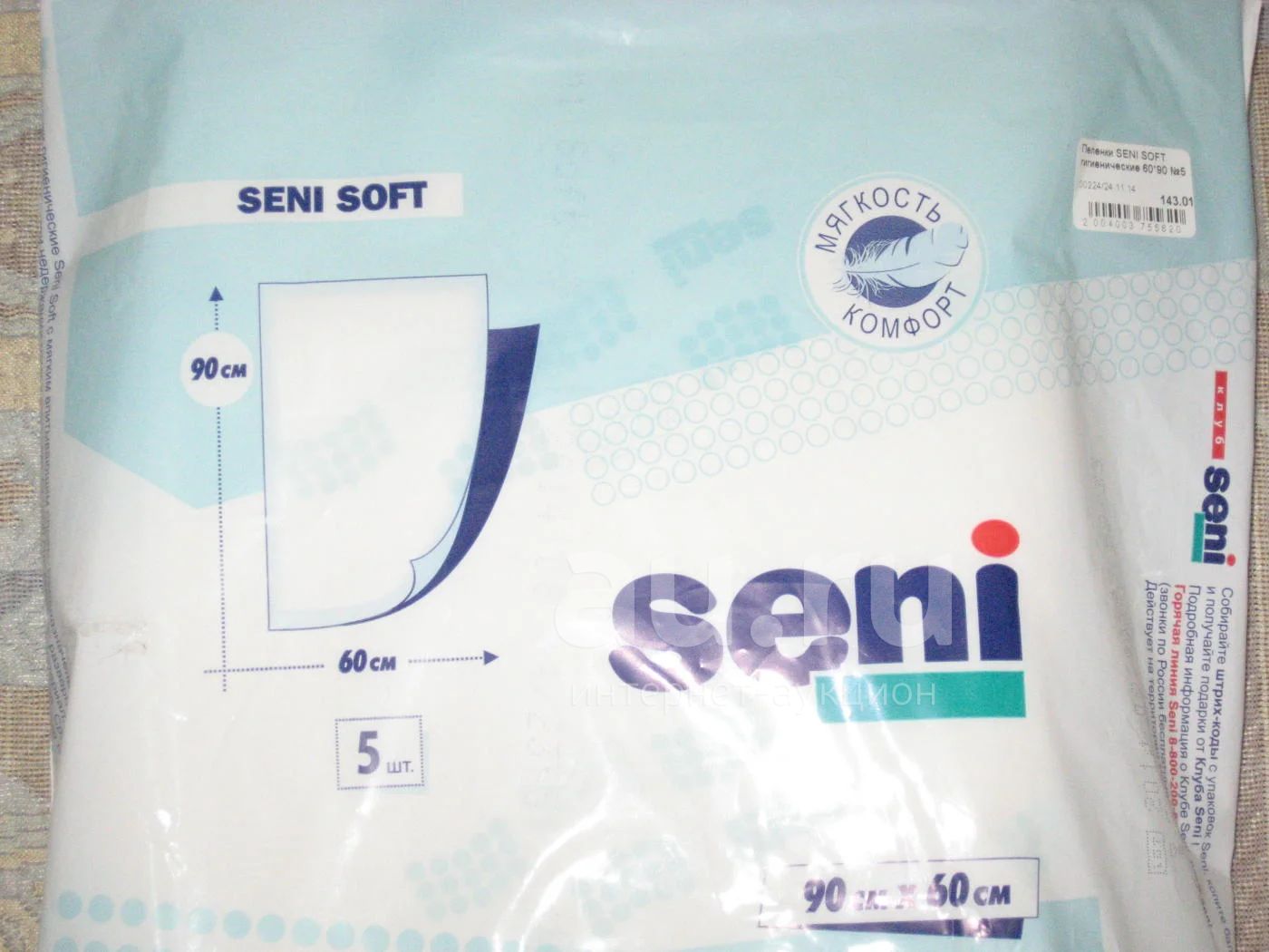 Пеленки гигиенические предназначены для дополнительной защиты постельного белья. Размер 90х60. Упаковка открыта, в наличии 3 штуки.