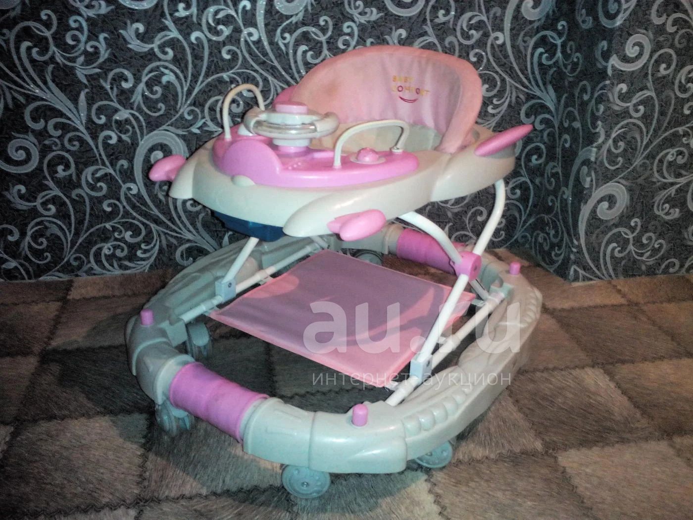 Ходунки-трансформер!Ходунки трансформируются в стульчик для кормления,также трансформируются в качалку!Есть музыкальный руль!Также под ноги крепится розовый батуд,для того чтобы ребенок спокойно кушал при трансформации в стульчик для кормления.