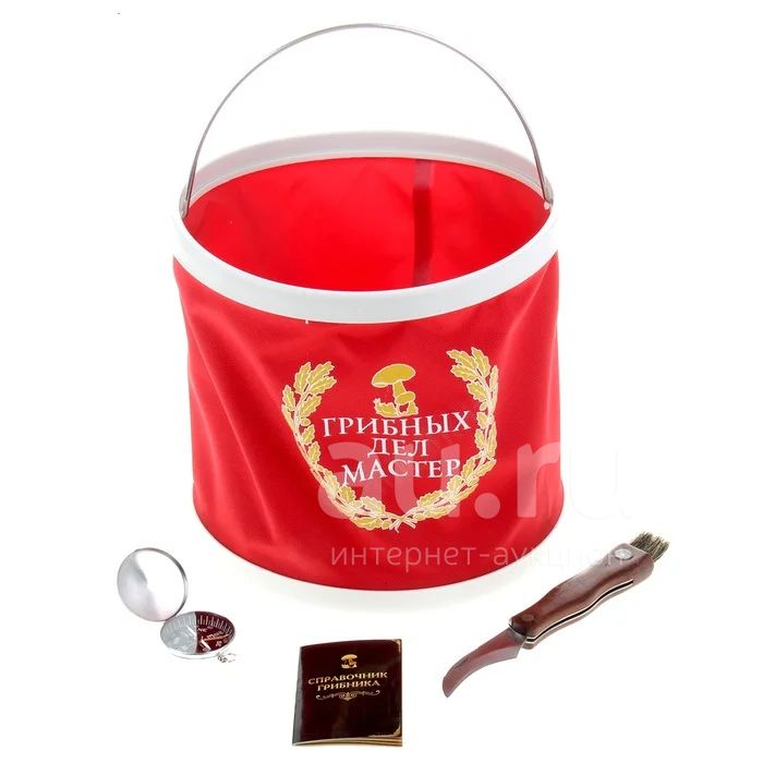 Набор грибника "Грибных дел мастер" (складное ведро, нож для грибов, компас, справочник грибника) может стать отличным подарком для друзей и близких.
