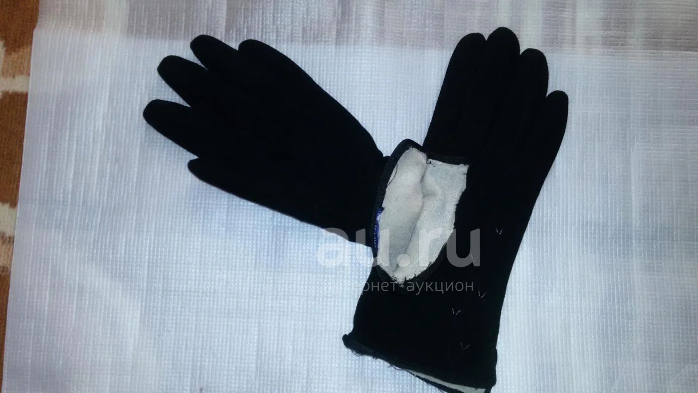 перчатки черные велюр или замша подкладик - флис
