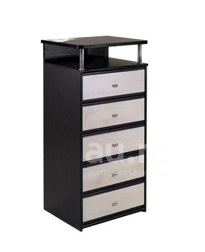 Компактный комод «Аризона 10», состоящий из пяти ящиков и ниши, легко разместить в любом помещении. Модель декорирована по технологии софтформинг (края всех деталей закруглены). Лёгкость модели придают глянцевые металлические держатели, к которым крепится столешница. Дно ящиков выполнено из облагороженной с двух сторон ДВП. Это позволяет исключить осыпание опилок на вещи, хранящиеся внутри.