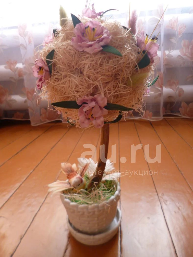 Топиарий - декоративные деревья из разнообразных материалов: сухоцветов, сизаля, тканевых цветов, ракушек, бумаги разного вида, лент, конфет, зерен кофе, и прочего.