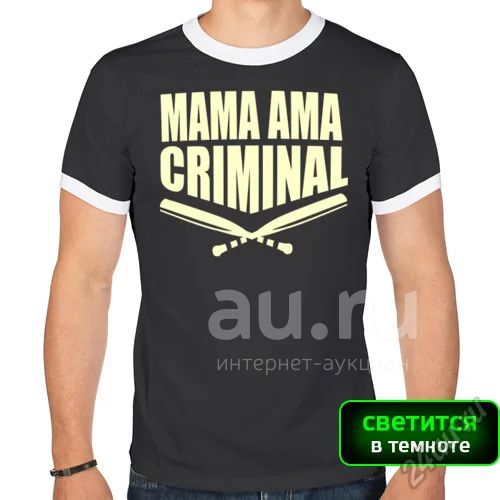 Мужская футболка рингер "Mama ama criminal, glow" (Арт.: 161656), M (46-48) - новая в наличии | Много оригинальных товаров с прикольными принтами, для себя и в подарок! * Доставка по Красноярску! Доставка по России!