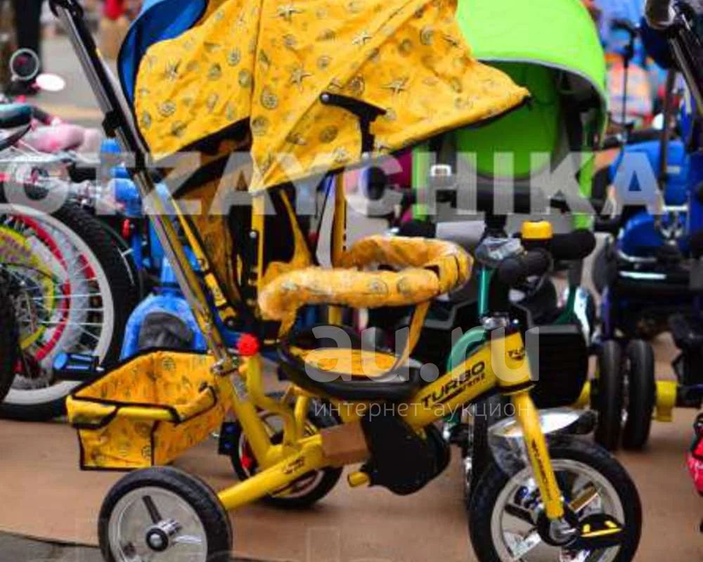 Велосипед 3-х кол с диаметром колес 10" и 8" дюймов, надувные колеса, материал: резина, рама: сталь, хромированные крылья, сидение со спинкой, подгузник, несколько положений спинки, багажная корзина, колясочная крыша, глубокий козырек, двойная ручка управления, складная подножка, мягкий подголовник, разъемный мягкий страховочный обод, сумочка для мелочей, глубокий козырек, звонок.
